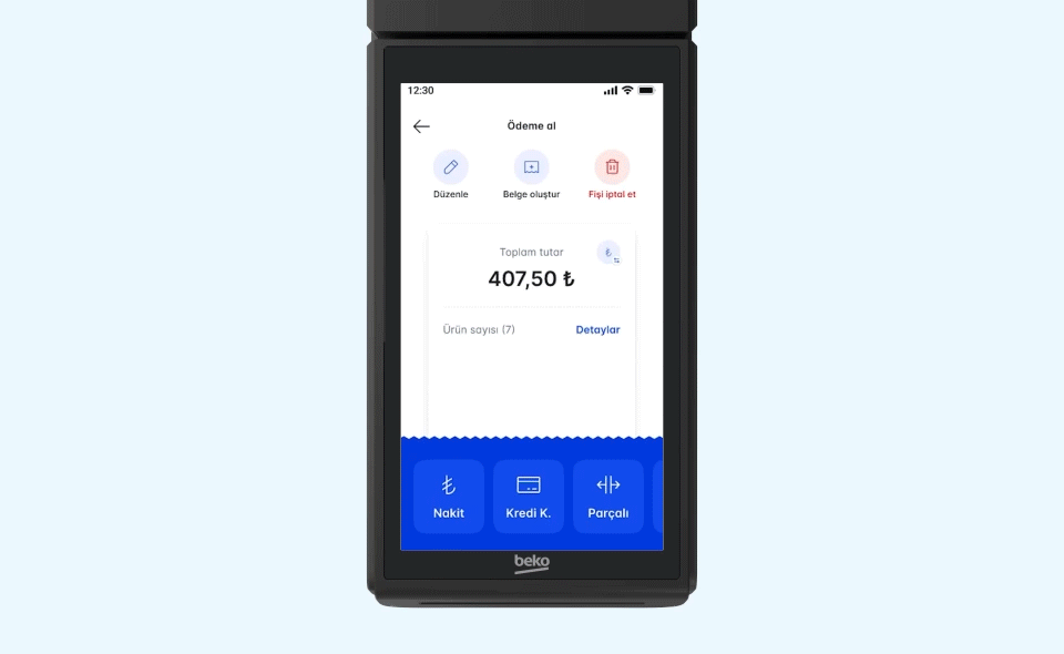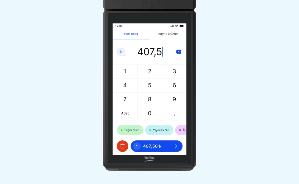 Equipped with features that speed up sales and payment processes, X30 TR eliminates the need for a calculator through its multiplication function on the quick sales screen. After entering the amount to receive payment, you can view and select the arranged sections, allowing you to receive payment in seconds, thus accelerating your sales.