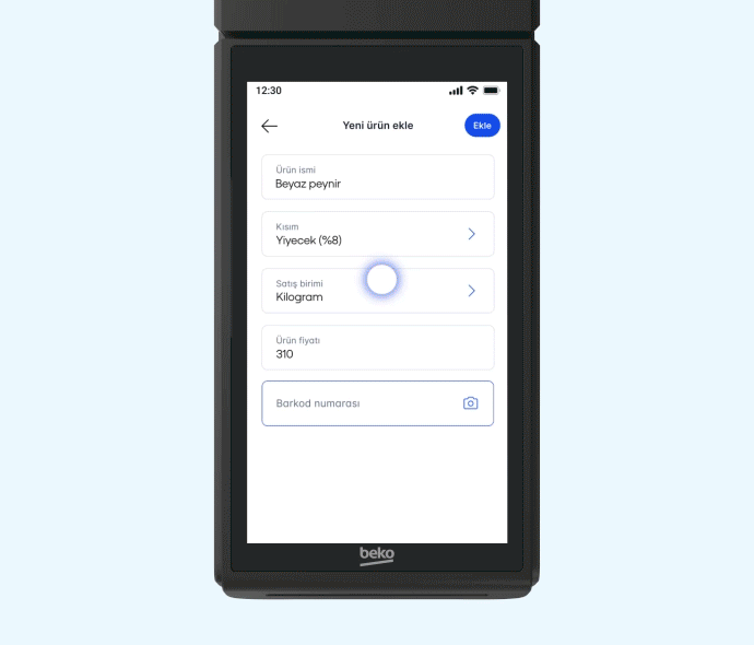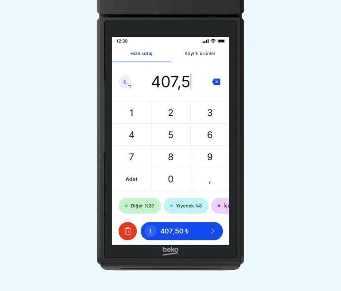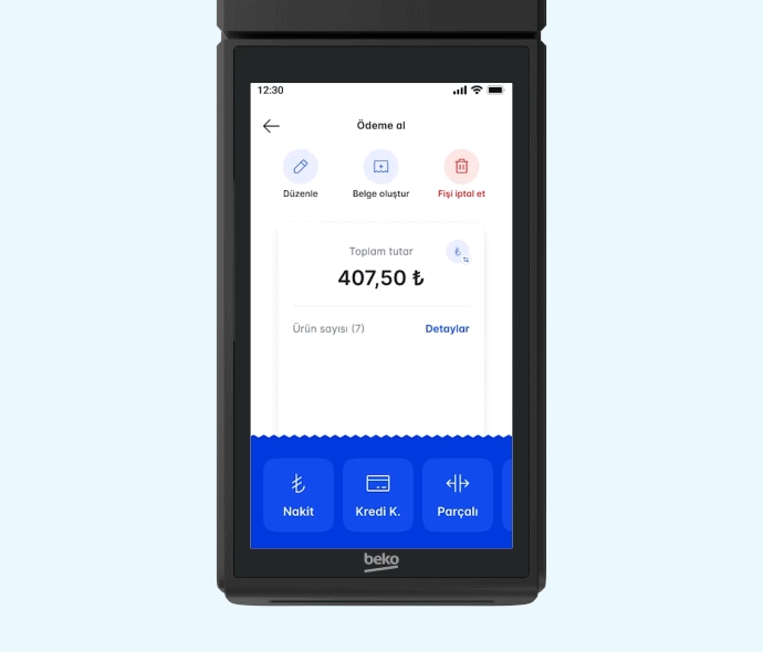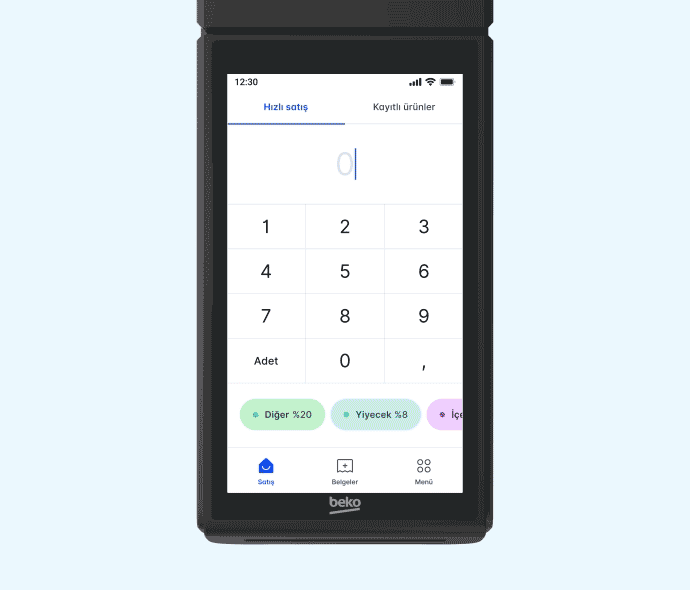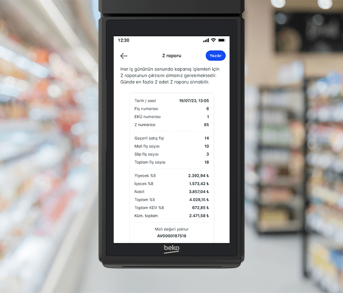 X30 TR’nin entegre kamerası sayesinde önceden tanımladığınız ürün barkodlarını hızlıca okutarak sepete ekleyebilir, satış işlemlerinizi hızlandırabilirsiniz. Bu sayede ek bir barkod okuyucuya gerek kalmadan satış süreci daha pratik hale gelir. Ayrıca cihazda yer alan Ürün Raporu özelliğiyle, satışı yapılan ürünlerin adet ve tutar bazlı özetini görüntüleyebilir; stok takibini kolayca yapabilirsiniz.